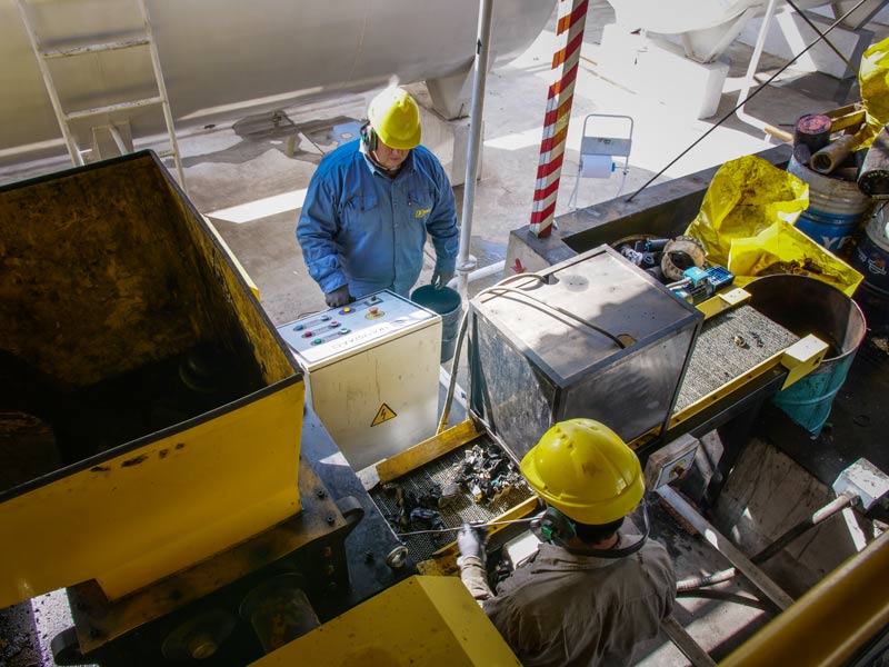Residuos triturados en planta de tratamiento de residuos industriales - Parino group